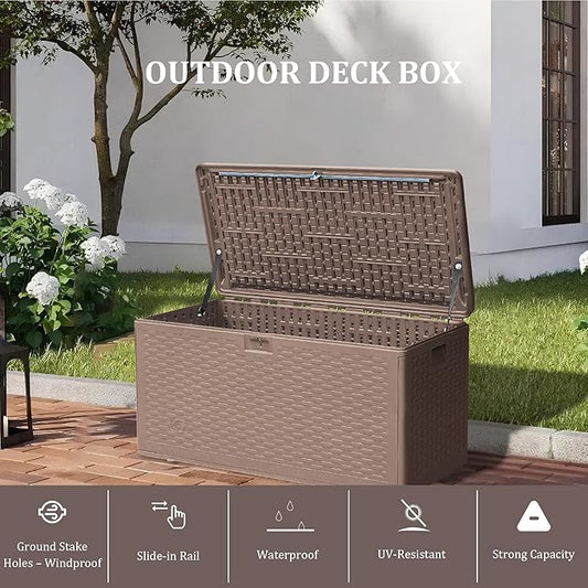 73GAL Brown Blow - Molded Outdoor Deck Box with Lock Hole - Waterproof, SGS - Protected from UV, Spacious for Garden Equipment and Pool Toys Storage, Easy to Assemble