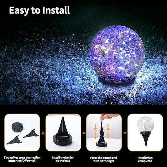 Solar Globe Lights Outdoor Waterproof-Solar Balls for Garden-Cracked Glass Ball Solar Lights Outdoor-Solar Orbs for Outside-Outdoor Decorations for Patio and Yard Lawn Backyard Decor