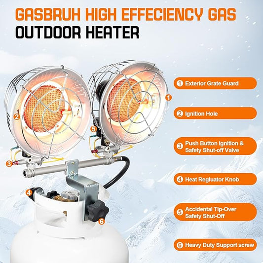 Double Tank Top Outdoor Propane Heater With a Windproof Lighter, 36000BTU Outdoor Propane Heater With Shut-off Valve and Tip-over Switch for Garage,Patio, Camping,RV(CSA)