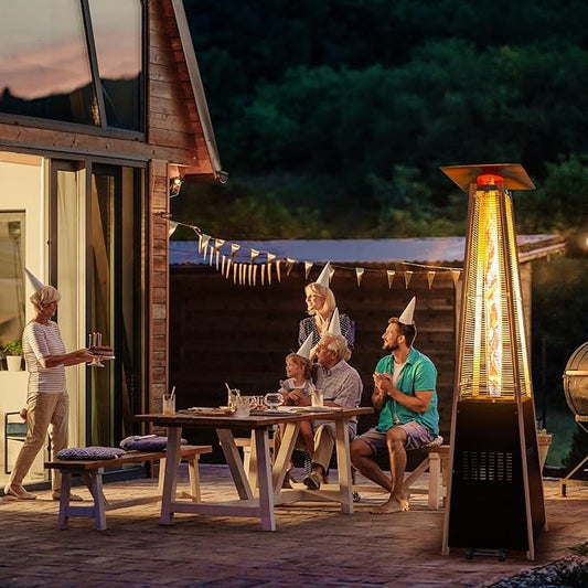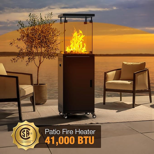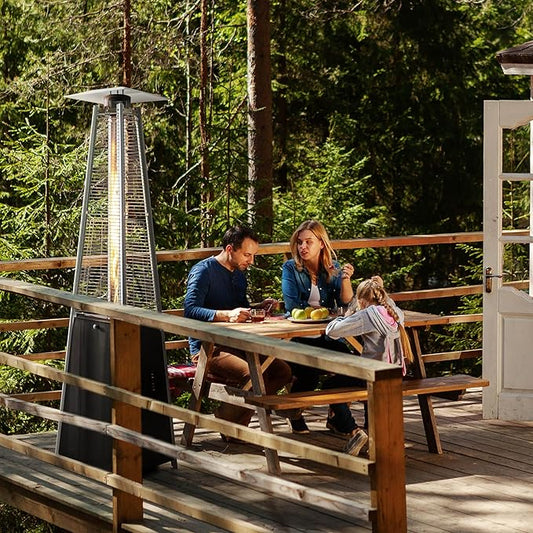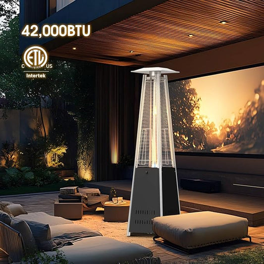 Outdoor Heaters for Patio 42,000BTU, Pyramid Patio Heater Quartz Glass Tube, Outdoor Heater Safety Protection System, Propane Heater with Wheels for Commercial & Residential, Black