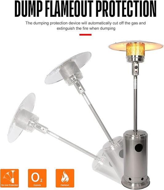Patio Heater, 48,000 BTU Pyramid Flame Outdoor Propane Heater with Borosilicate Glass Tube, Wheels & Weatherproof Cover, CSA Certified for Backyard, Garden, Porch (Silver Gray)