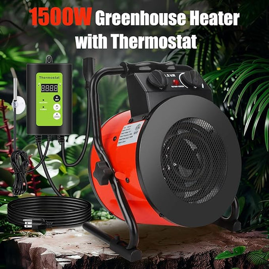 Greenhouse Heater with Thermostat, 1500W Outdoor Heater with Fast Heating, Overheat Protection, Grow Tent Heat for Greenhouse, Garden, Flower Room