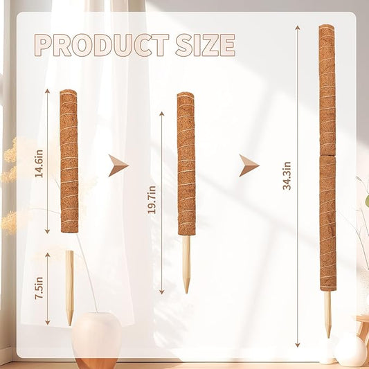 Augshy 34 Inch Moss Pole, 2 Pack 19.5 Inch Moss Poles for Climbing Plants Monstera, Moss Sticks for Indoor Plant Support Plant Stakes for Indoor Climbing Plants Grow Upwards with Garden Ties