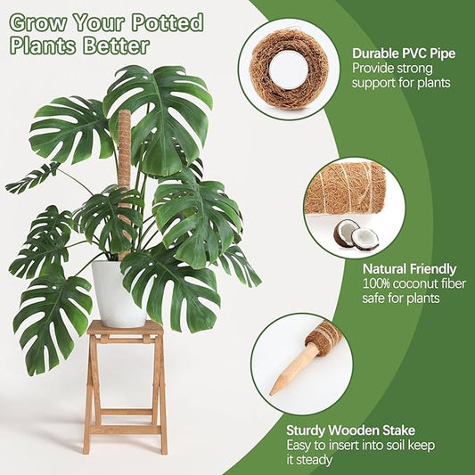 2 Pack 63 Inch Moss Pole for Plants, Tall Moss Poles for Climbing Plant-Monstera, Handmade Coco Coir Pole, Monstera Plant Support for Plant Grow