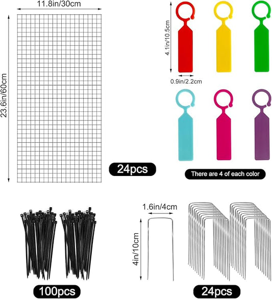 8 Pack 24'' x 12'' Large Wire Plant Protector from Animals, Metal Plant Wire Cage Chicken Wire Cloche with Ground Stakes , Labels and Nylon Tie to Keep Animals Out, Garden Protection Bunny Barricade