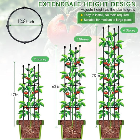 Tomato Support Cages for Garden Metal Plant Stakes 2 Packs 47 Inch Tall Large Heavy Duty Plant Cage Trellis for Support Outdoor Climbing Vegetables Plants Flowers Comes 20 Strap Ties