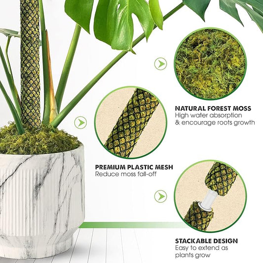 2 Pack 28'' Bendable Moss Pole Monstera Plant Support for Indoor Climbing Plants, Tall Plant Stick Support Stake for Potted Plants, Pothos, Philodendron