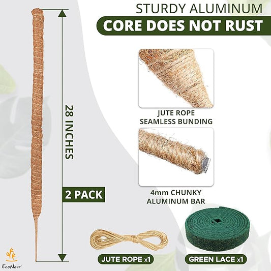 EcoNour 28" 2 Pack Moss Pole | Moss Pole Monstera Plant Support | Plant Sticks for Indoor Climbing Plants | Support for Potted Plants Like Pothos, Philodendrons, and More