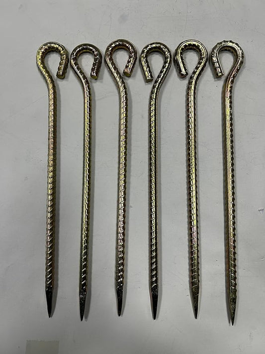 Moonmama 16英寸约40厘米超长螺纹钢钉 黄色电镀防锈地桩 0.1英寸粗约1.27厘米直径粗金属地锚9字型 适用于减速带 足球场紧固件 户外 花园 秋千 草地 车轮挡块 10支装