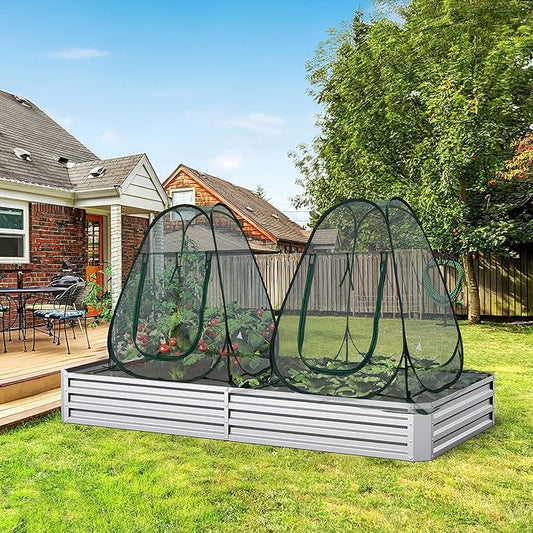 JOJOLEE Fruit Tree Netting for Garden Protection, 2Pcs 8.2 x 6.5FT Insect Bird Nettings with Zipper and Drawstring, Plant Cover Mesh Net Bags for Blueberry Bushes, Tomatoes, Flowers