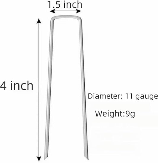 4 inch 25 Pack Silver Galvanized Landscape Staples 11 Gauge Garden Stakes Pins Anti-Rust Ground Stakes U-Shaped Tent Stakes are Used for Weed Barrier, Irrigation Tubing, Yard Lawn, Landscape Fabric