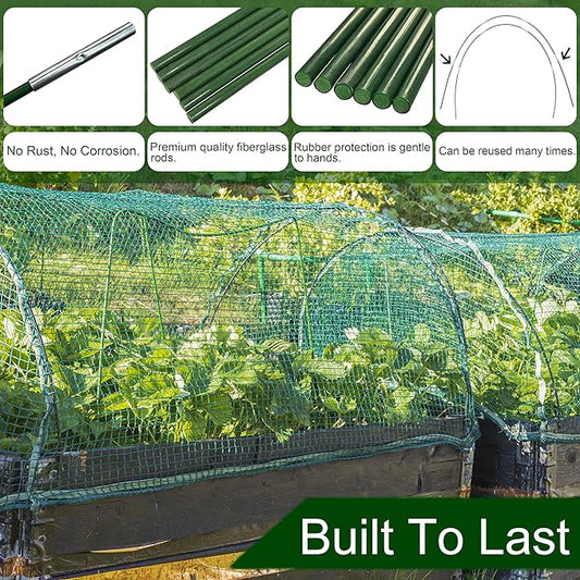 PHYEX Garden Hoops Greenhouse Hoops for Row Covers & Raised Beds, Rust-Free Fiberglass Frame, DIY Adjustable Garden Tunnel with Clips for Plant Covers, Netting, & Frost Protection, 30pcs