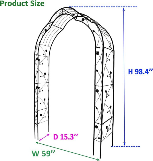 Metal Garden Arch 98.4" H Garden Arbor Trellis Climbing Plants Support Rose Arch Outdoor Lawn Wedding Party Events Archway Black