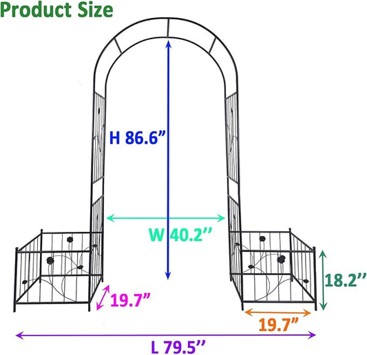 Metal Garden Arch with 2 Plant Stands, Garden Arch Trellis for Climbing Plants Outdoor, Garden Arbor for Weddings Party Events Decoration, 79.5" L X 19.7" W X 86.6" H, Black
