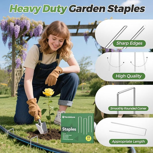 25 Pack Garden Staples,6 Inch 11 Gauge Galvanized U-Shaped Garden Stakes,Heavy-Duty Ground Yard Stakes for Inflatables,Irrigation Tubing,Holding Fence,Weed Barrier,Decoration