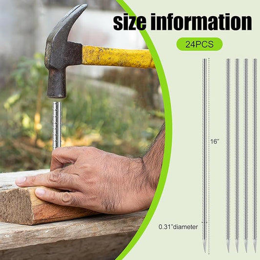 Gisafai 24 Pcs 16inch Ground Rebar Stakes Metal Heavy Duty Stakes Ground Landscape Anchors Spike Garden Stake Edging Spikes Plant Support with Chisel Point End for Concrete Timber Garden Tent Camping