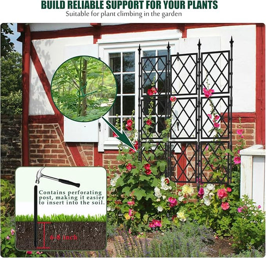 Garden Trellis for Climbing Plants Outdoor 5.25 FT, Plastic Coated Iron Pipe Metal Support Wall Tall Plant Trellis Fence with 20 Ties for Ivy Vines Rose