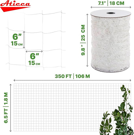Trellis Netting 6.5 x 350 ft Heavy Duty Polyester Plant Support Netting White - 6 Inch Garden Rope Trellis on Roll - Mesh Twine for Growing Vine Climbing Plants, Flowers, Peas, and Tomatoes.