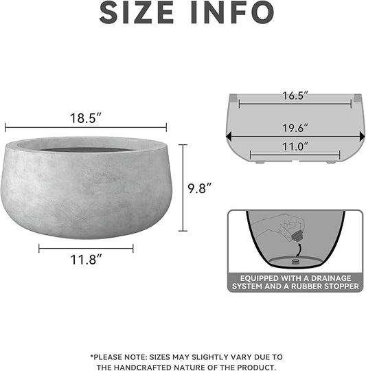 Kante 19.6" Dia Round Concrete Planter, Cement Plant Pots with Drainage Hole and Rubber Plug for Outdoor Indoor Garden Home, Modern Curvaceous Design, Natural Concrete