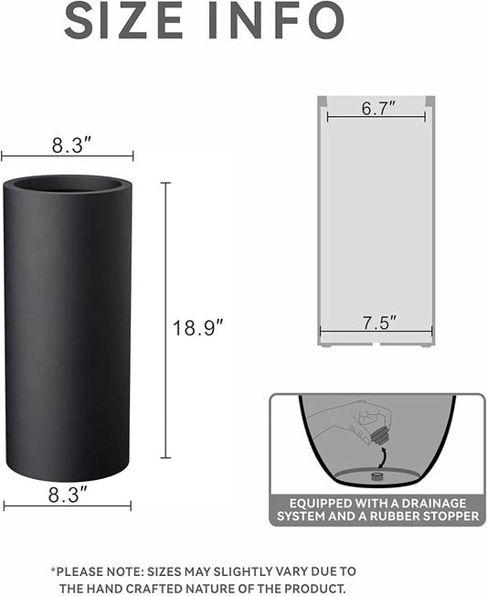 Kante 18.9 Inch Tall Cylindrical Planter, Large Round Plant Pots with Drainage Hole, Made with Concrete, Suitable for Indoor Outdoor Plants, Home Decor, Black