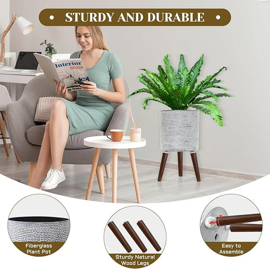 Flower Pot with Legs Tall Flower Pot with Drainage Holes for Indoor and Outdoor Decorative Planting (Gray Wave, 10 Inches)