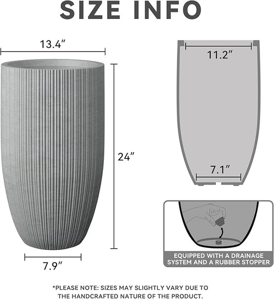 Kante 24 Inch Tall Round Concrete Planter, Large Indoor Outdoor Plant Pots with Drainage Hole and Rubber Plug, Modern Decorative Garden Pots for Home Patio Porch, Textured Natural Concrete