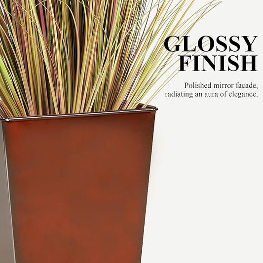 Worth Garden 28" Large Metal Glazed Planter Set of 2, Luxurious Glossy Finish Red Tall Square Tapered Steel Plant Pots, Decor Flower Pot Indoor & Outdoor, Drainage Hole & Dual-Purpose Plant Saucer