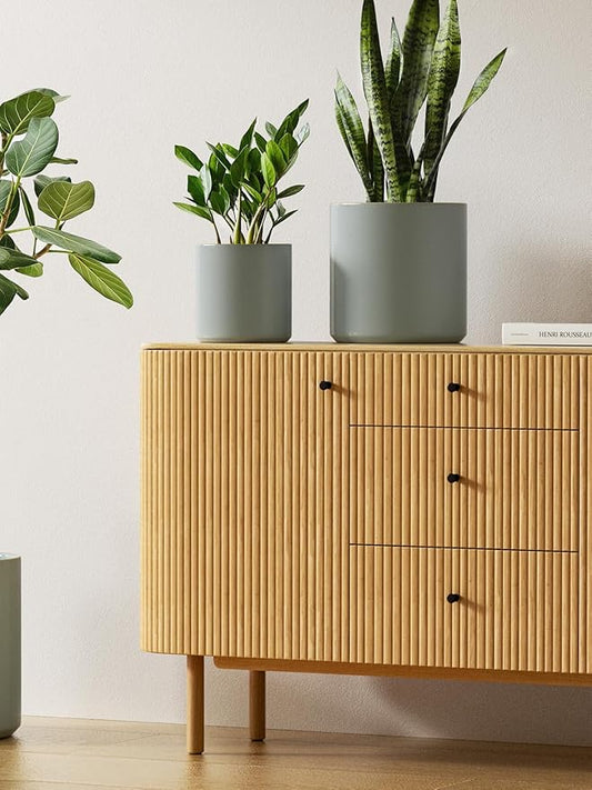 LE TAUCI Ceramic Plant Pots Indoor, 10+8+6 Inch Planters for Indoor Plants, Mid-Century Modern Flower Pots with Drainage Hole and Plug, Cylinder Round Planters, Set of 3, Blue Gray