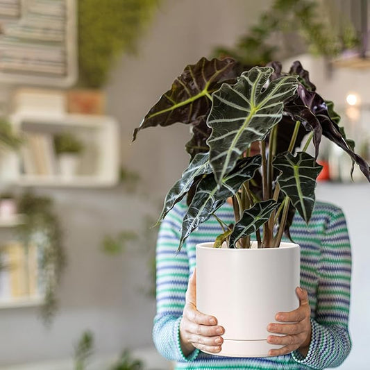 Plant Pots Set of 5, 10" Outside Diameter Flower Pots, 8.5" Inner Diameter Plant Planters with Drainage Hole, Durable Garden Pots Perfect for Indoor & Outdoor Plant Planting, Decor, White