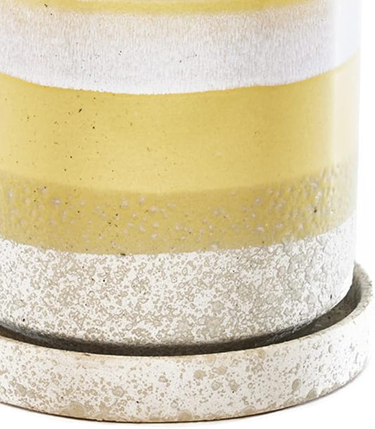 CHIVE - Minute, Succulent, Cactus Pot and Saucer Ceramic Flower and Plant Container with Drainage Hole and Detachable Saucer Great for Indoor/Outdoor Garden Decor (Yellow)