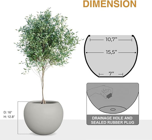 Globo Large Fiberstone Plant Pot, Large Planters for Indoor Plants, Outdoor Planters for Porch (Light French Gray, 16" D x 12.8" H)