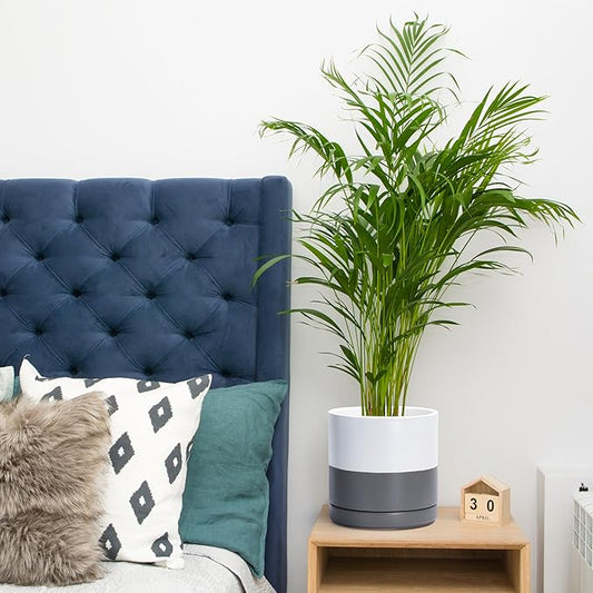 D'vine Dev 12 Inch Ceramic Planter Pot with Drainage Hole and Saucer, Indoor Cylinder Round Planter Pot, White, 94-O-F-1