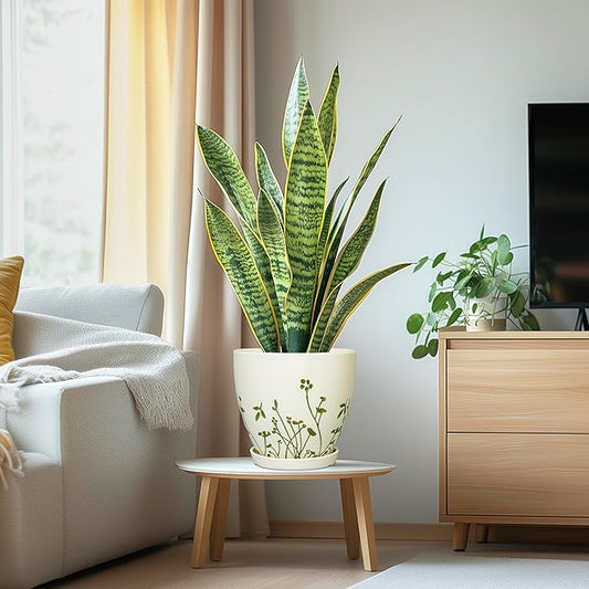 10 Inch Plant Pot - Ceramic Planter for Indoor Outdoor Flowers, Decorative Round Indoor Flower Pot with Drainage Hole and Saucer, Plant Lover Gifts, Garden Patio Home Office Decor, White