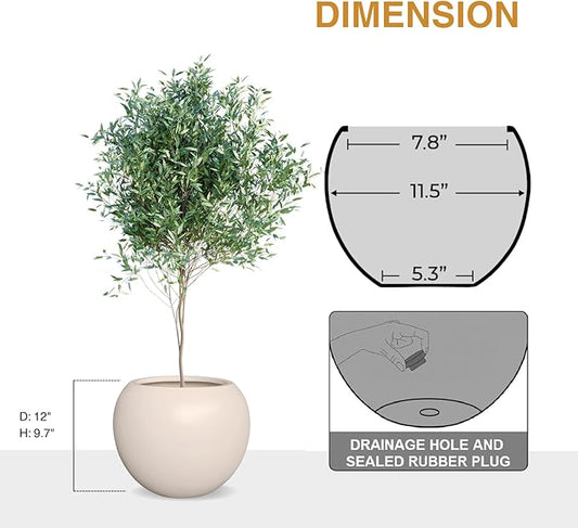 9.7" H x 12" D Globo Fiberstone Round Planter with Drainage Hole, Weather Resistant, Planters for Indoor Plants & Outdoor, 2 Extra Coco Mats (Kilim Beige, 7.8" Pot Opening)