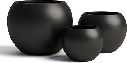 DTY Signature Mount Sherman Lightweight Durable Modern Fiberstone Sphere Planter for Indoor & Outdoor Drainage Hole & Rubber Plug Weather Resistant, 13.5" H x 17" Dia, 12" Opening- Medium, Black