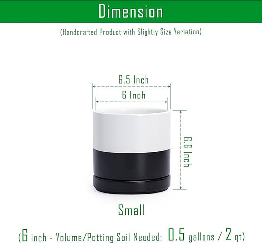 D'vine Dev 6.5 Inch Ceramic Planter Pot with Drainage Hole and Saucer, Indoor Cylinder Round Planter Pot, Layered Monochrome Black & White, 94-O-C-L