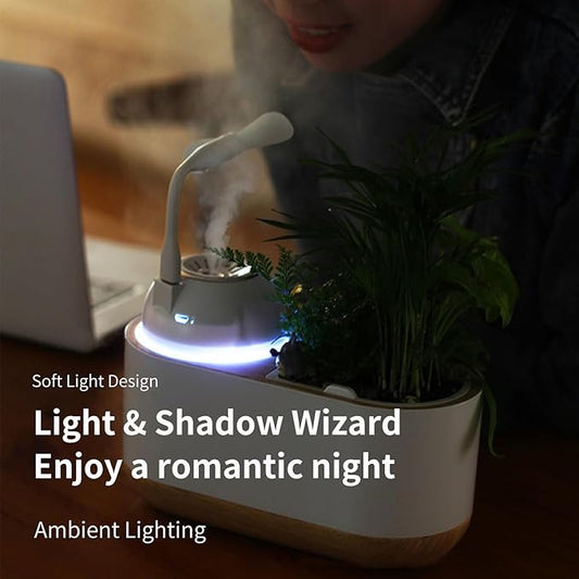 Flowerpot humidifier dual use, Hydroponics Growing System,smart planting, Soft light design,automatic water absorption container,Gardening Gifts for Women,Plant-Free(White)