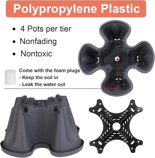 Vertical Planter 3 Tier Stackable Planters Garden Planters Strawberry Herb Flower and Vegetable Planter Indoor Outdoor Gardening Pots with Removable Wheels and Tools