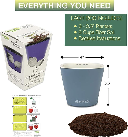 Window Garden – Aquaphoric Self Watering Mini Planter Pots (3 Pack) – Grow On Indoor Sill. Perfect for Potting Small Plants, Herbs, African Violets, Succulents, or Start Seedlings.