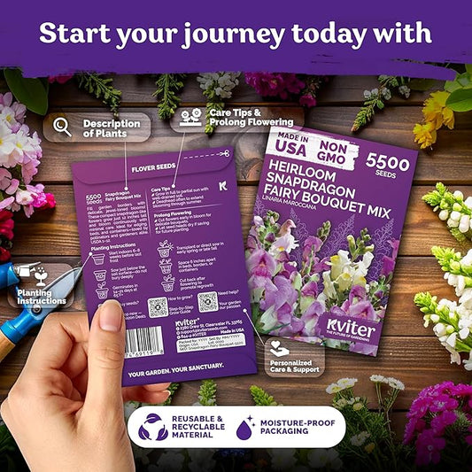 KVITER 5,500 Fairy Bouquet Mix Snapdragon Seeds for Planting (Linaria Maroccana) – Known as Toadflax, Heirloom & Organic – Flower Seeds to Plant Outside & Inside – Garden, Containers, Borders, Beds
