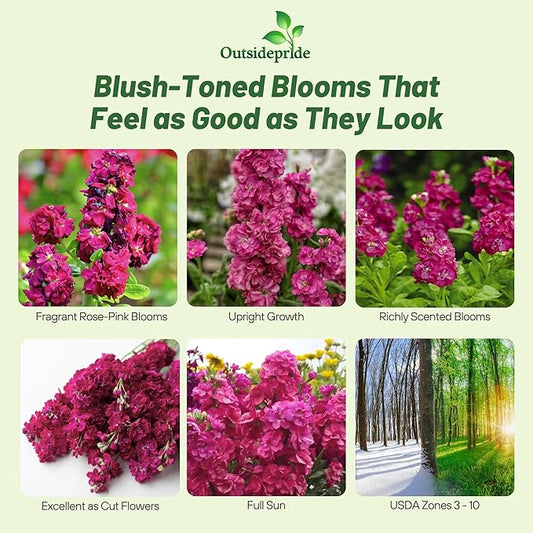 Outsidepride Ten Week Deep Rose Mattiola Stock Seeds - 1000 Pcs Annual Flower Seeds for Planting with Fragrant Blooms that Attract Pollinators, Compact Growth, for Cut Flower Arrangements & Containers