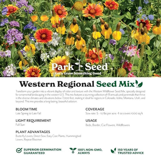 Park Seed Grow Your Own Vibrant Annual and Perennial Wildflower Garden Seeds Mixture, Easy to Grow Varieties for Pollinators and Spring Gardens - Western Regional Mix, 1/4 lb