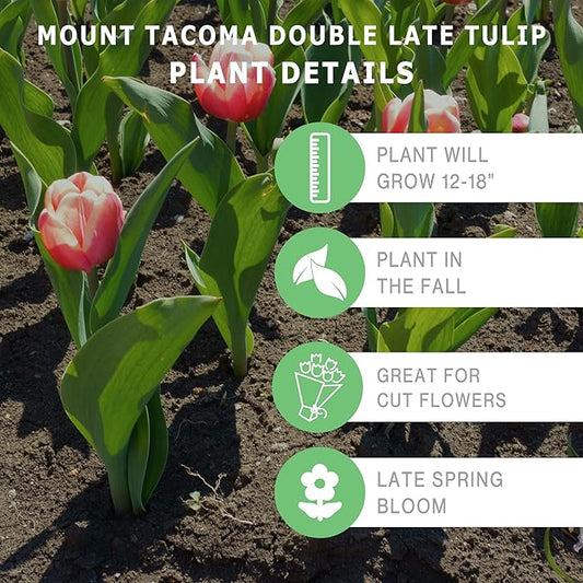 Mount Tacoma Double Late Tulip Bulbs (10-Pack) Elegant White Tulips for Fall Gardens – Hardy Tulip Bulbs for Fall Planting