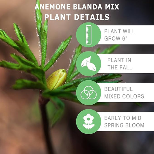 | 20 Mixed Anemone Blanda Bulbs for Fall | Deer-Resistant & Vibrant | Perfect Perennial Garden Flower 4 to 5 cm Bulb Size