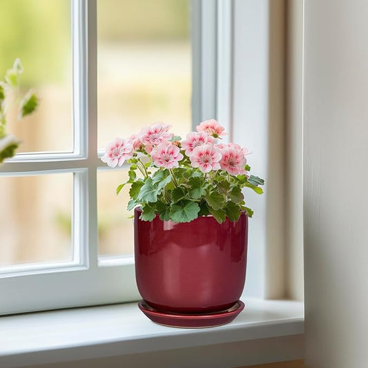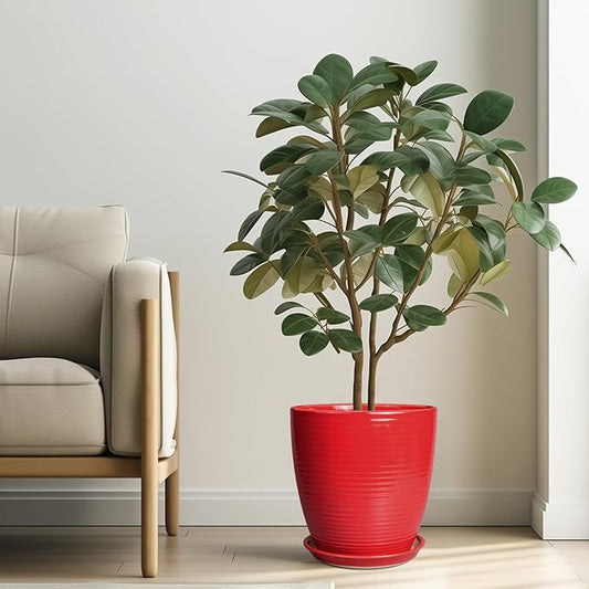 Ceramic Planter 10 Inch - Ceramic Pot for Plants Large Plant Pot Indoor with Drainage Hole and Saucer Round Outdoor Planter Modern Flower Pot for Garden House Red