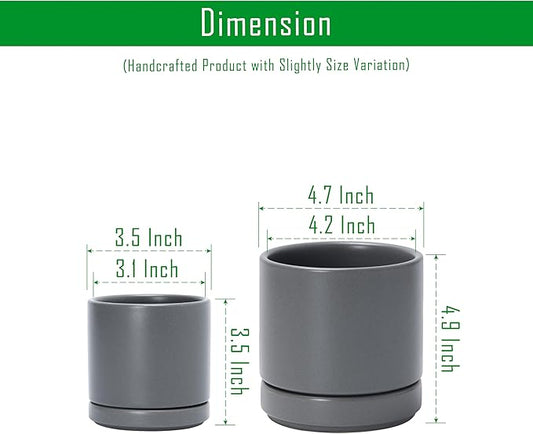 D'vine Dev 3.5 Inch & 4.7 Inch Ceramic Planter Pots for Plants with Drainage Hole and Saucer, X-Small Plant Pots Set, Speckled Grey, 94-G-XS-3