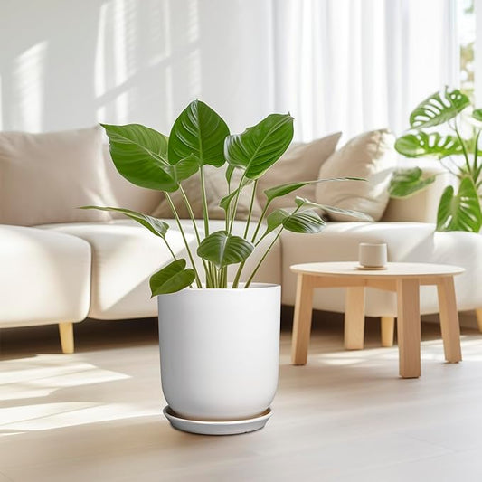 Pots for Plants - 10 Inch Ceramic Plant Pot with Drainage Hole and Saucer Large Planter for Plants Indoor Outdoor Modern Flower Pot for Home Decor White