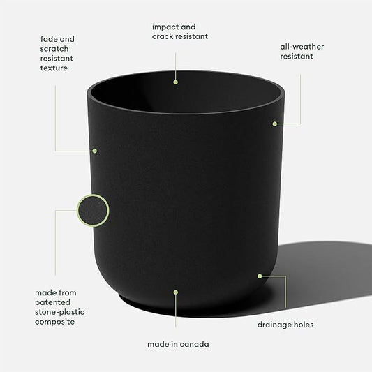 Veradek Mason Series Lima Planter - Round Planter for Indoor or Outdoor Porch/Garden | Made from Plastic-Stone Composite with Drainage Holes | Modern Décor for Succulents, Flowers, Small Plants