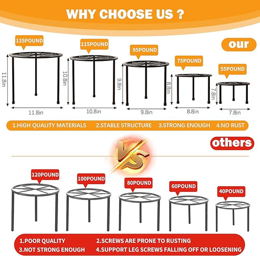 Metal Plant Stand Indoor Outdoor,Indoor Plant Stands for patio rust proof,Heavy Duty Flower Pot Stands for Multiple Plant,Black Potted Plant Holder for Garden Home (5 Pack Black)