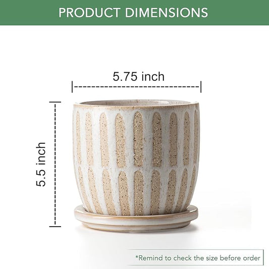 Ceramic Flower Pots Indoor-Outdoor: 5.75 Inch Planters with Drainage Holes & Saucer - Modern Decorative Plant Pots Ceramic for Home Gardeners (Striped)